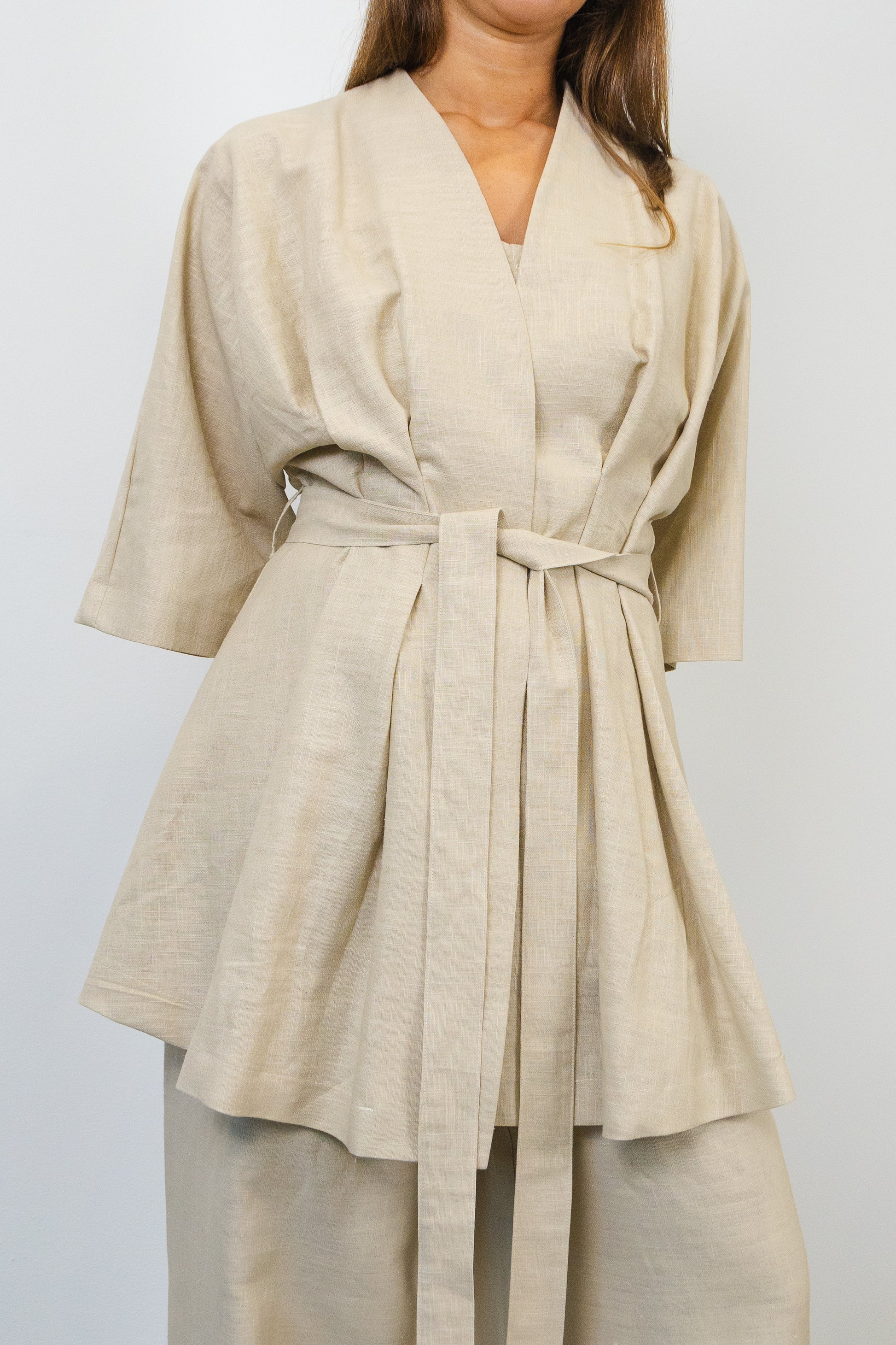 3/4 sleeve kimono with belt.